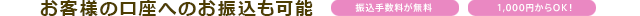 お振込みが可能です。振込手数料は0円です。